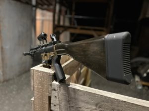 銃のストックのカタチが変わるだけで、見た目だけでなく視界も撃ち方も感覚も全く別物になる(*´ω`)!